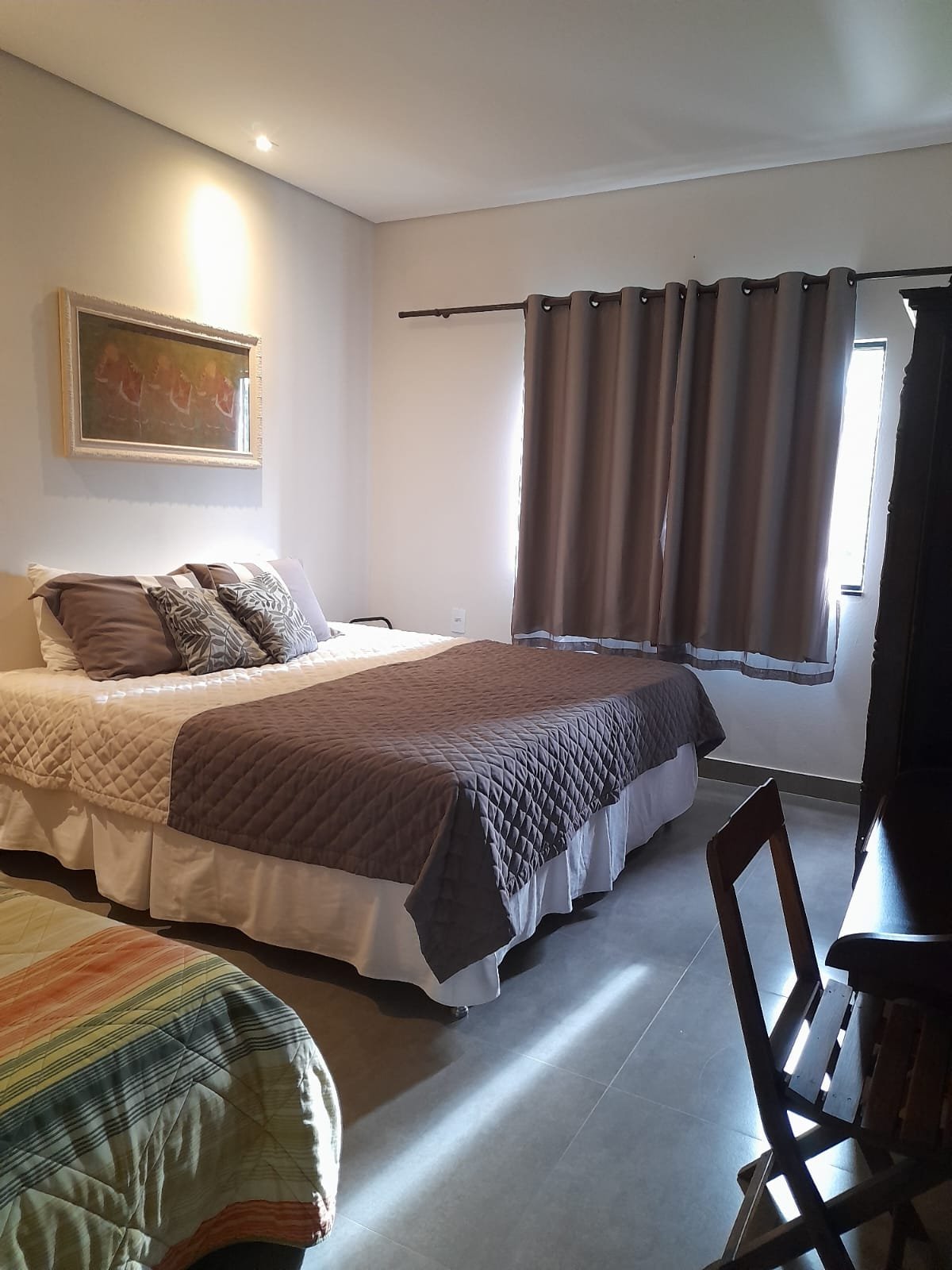 • 2 quartos, sendo um quarto solteiro e uma suíte