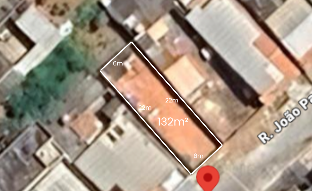 • Área total de 132m², sendo 6m de frente e fundos e 22m nas laterais